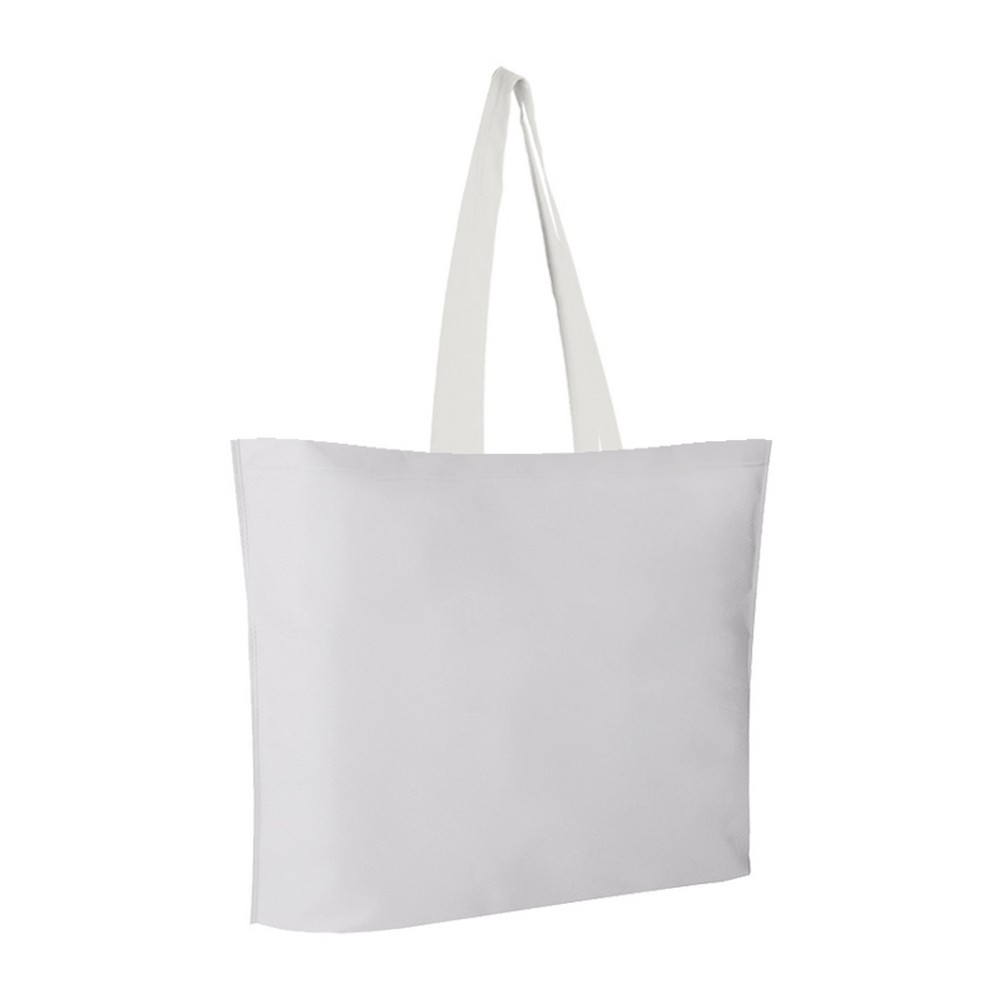 Borsa shopping termo.saldata in tnt. Base con soffietto. Manici a tracolla (cm.2,5x54).  Dimensioni cm. 50x40x12