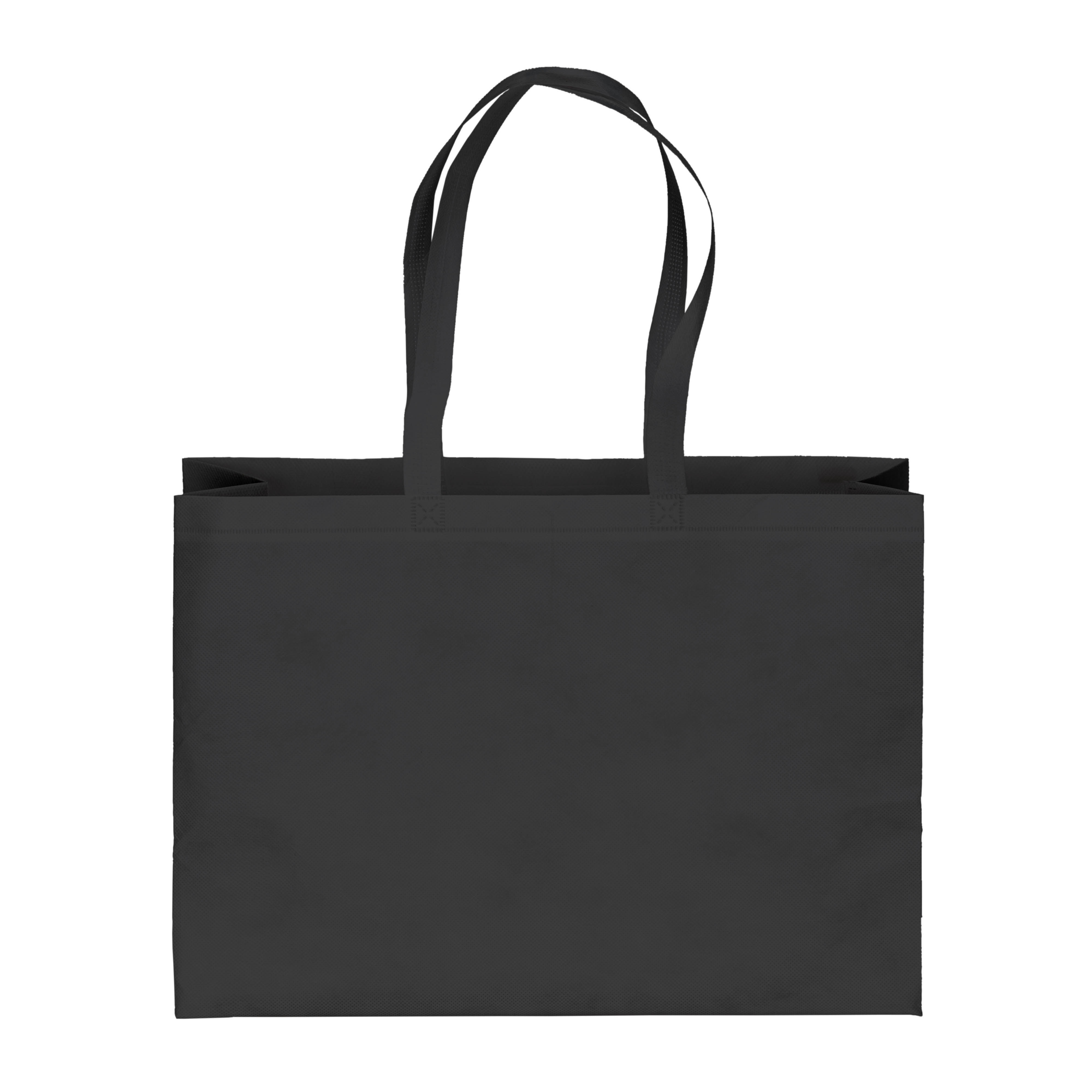 Borsa shopper in PET riciclato da 100 g/m2 (TNT R-PET) termosaldata. Dotata di soffietto e manici lunghi per un comodo trasporto a mano e a spalla. Il colore bianco è adatto per la stampa in sublimazione. Dimensioni borsa: 50 x 35 x 15 cm Dimensioni manici: 70 x 2,5 cm