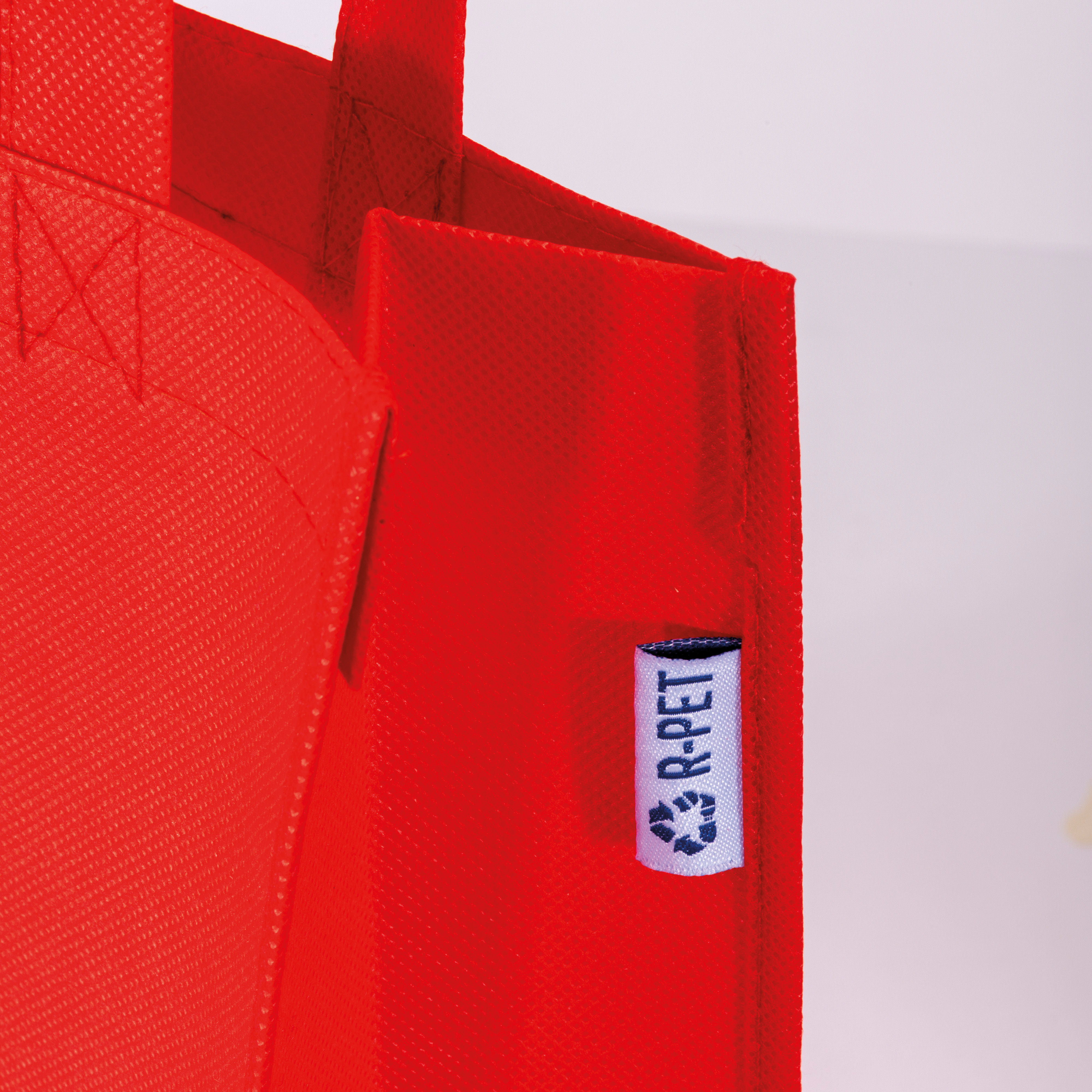 Shopper mini con soffietto in R-pet 80 g/m2 con soffietto, manici corti