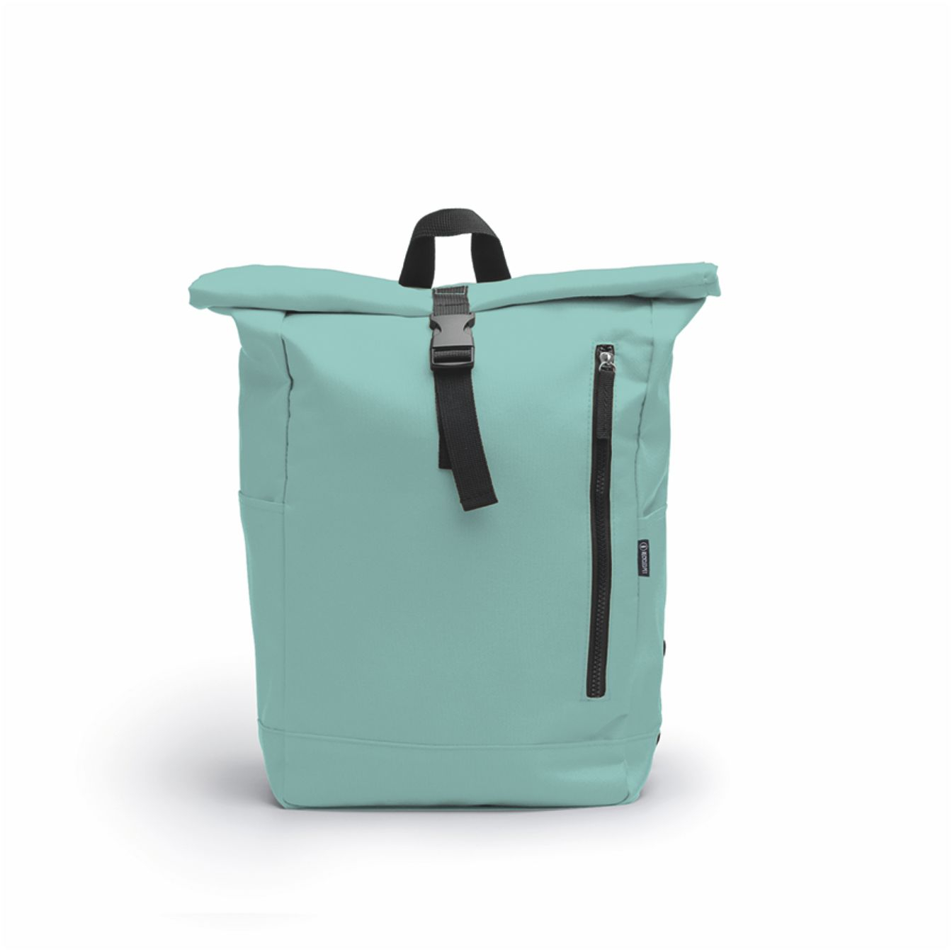Zaino in poliestere RPET. Scomparto principale spazioso con apertura estensibile. Tasca esterna con cerniera e due tasche laterali. Spallacci e schienale imbottiti. Dimensioni: cm 26,5x52,5x16