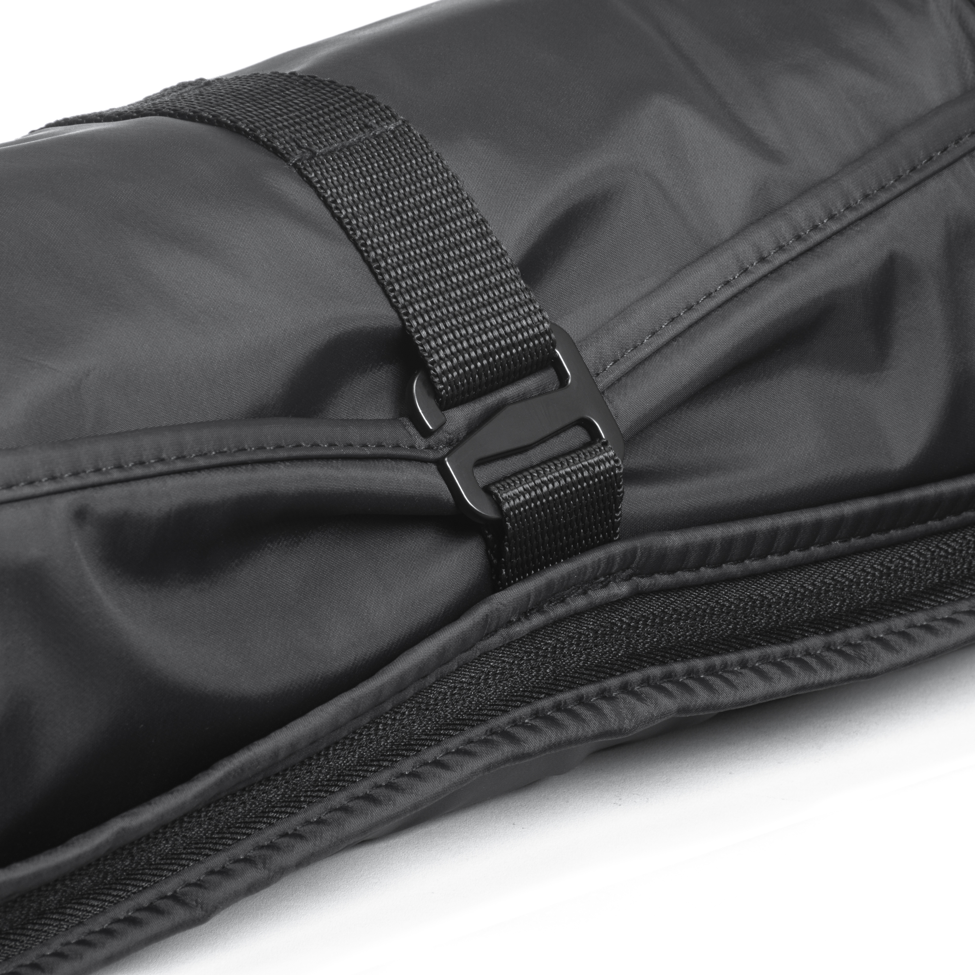 Zaino porta pc (15) pieghevole in nylon 310T. Questo zaino si arrotola su se stesso per diventare compatto e facile da trasportare. Ampio scomparto principale con chiusura con gancio in metallo. Tasca frontale con cerniera e 2 tasche laterali. Schienale e spallacci imbottiti con materiale traspirante